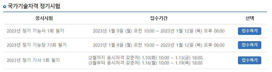 [2023년 정기 기능사 1회 필기 원서 접수]