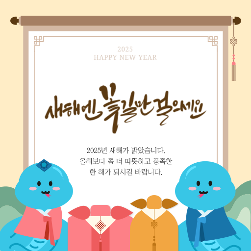 ㅇ 2025년 을사년에는 근심 걱정 없고 사랑과 웃음이 끊이지 않는 행복한 한 해 보내셨으면 좋겠습니다.