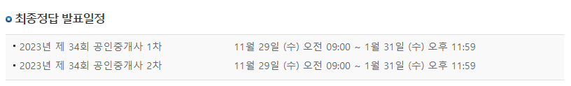 ㅇ 34회 공인중개사 합격자 발표 / 최종정답 발표 일정