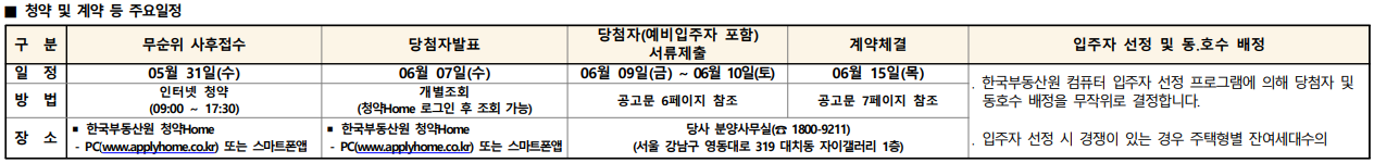 당첨자 발표 / 계약 일정