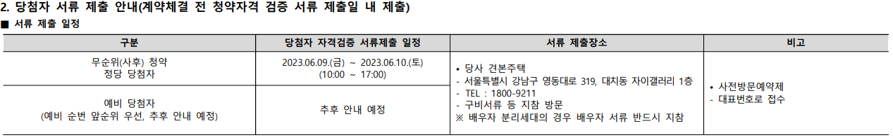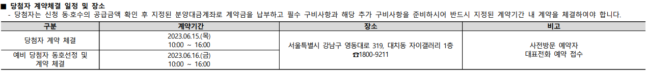 ㅇ 계약 체결 : 2023. 06. 15(목) (예비당첨자 06. 16(금)) 10:00~16:00