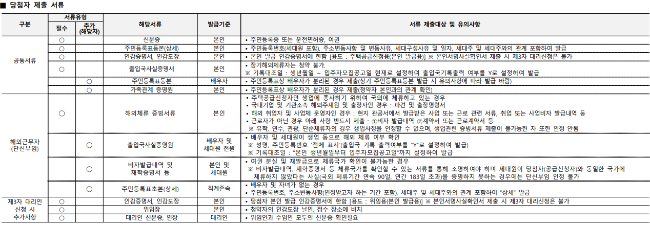 ㅇ 당첨자제출 서류 안내