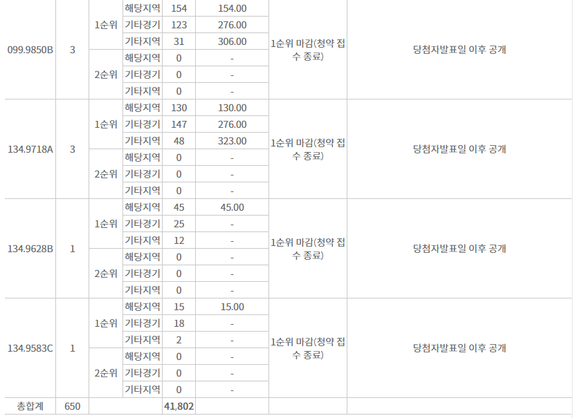 - 청약 경쟁률 ==> 41802명 지원:650명 모집 => 평균 64:1