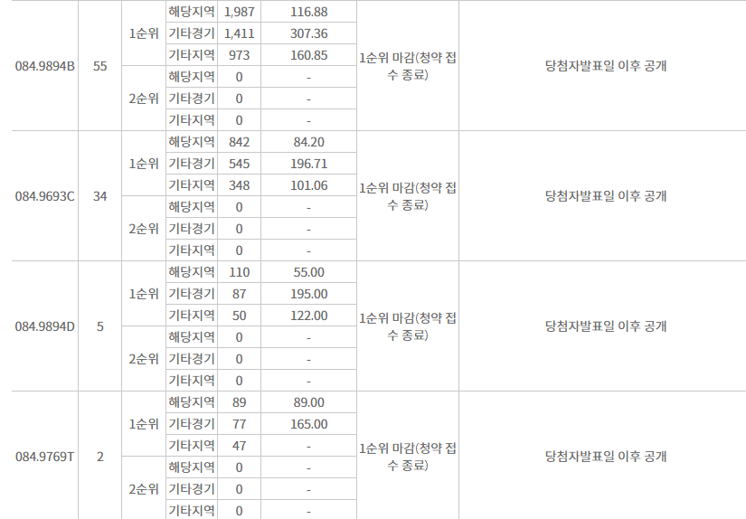 - 최고 경쟁률 타입 ==> 84A타입 329 대 1